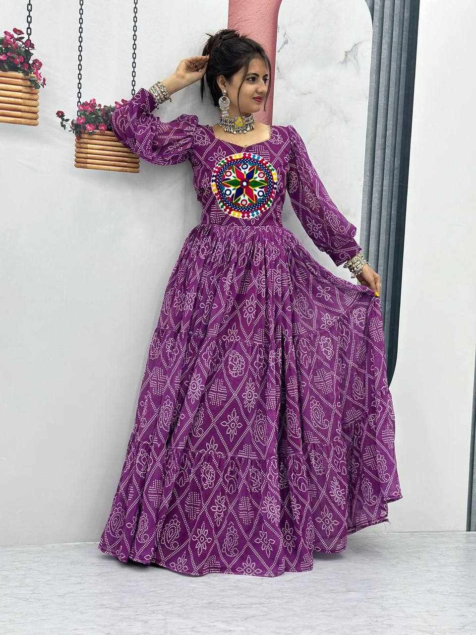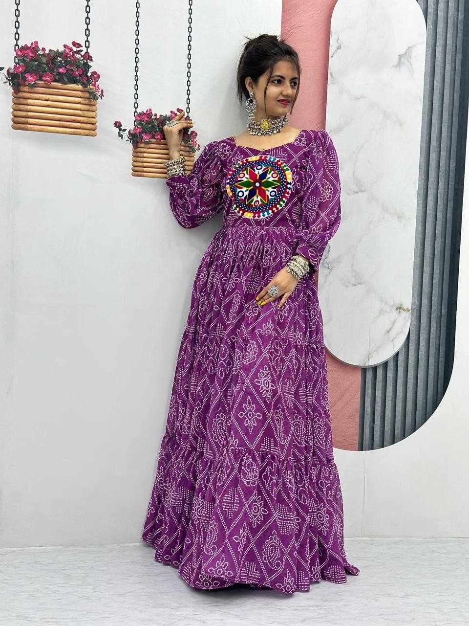 | Name : | PC N02 Purple Bandhani Print Gown |