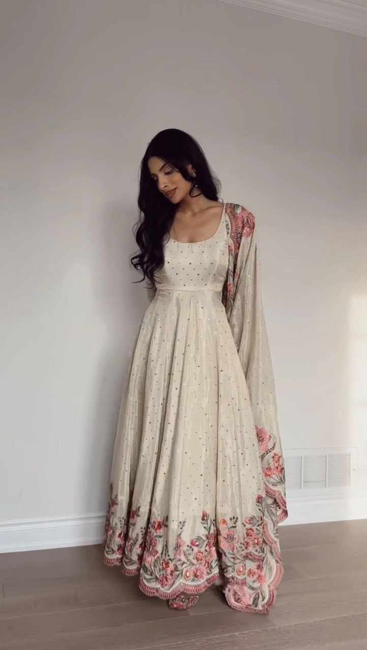 Reviews for RTC 5873 Chinon silk thread with Sequnce Off White Readymade Dress