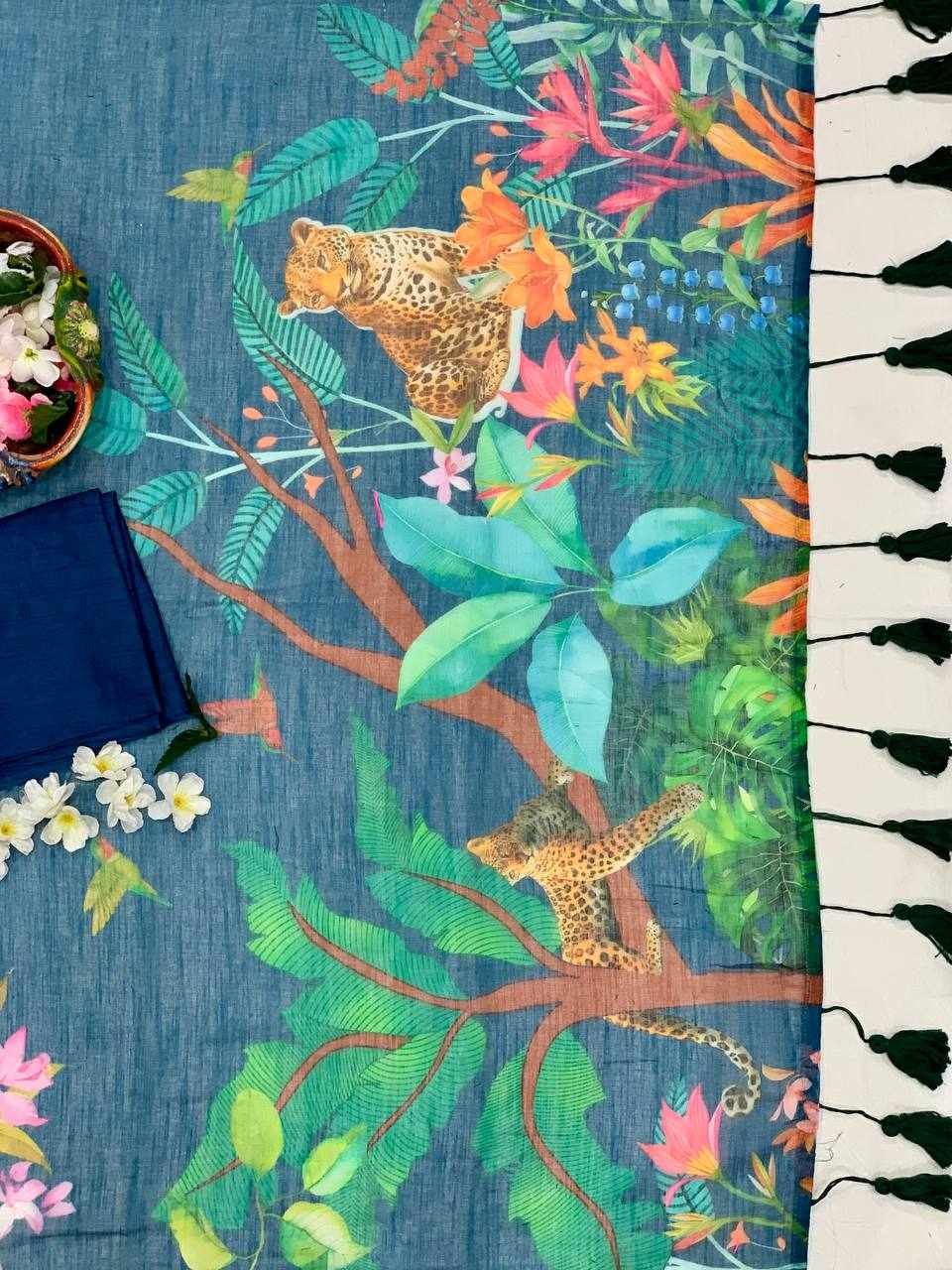 Fabric: Linen Cotton with beautiful digital print and handmade cotton tassels (5.5 m cut)
