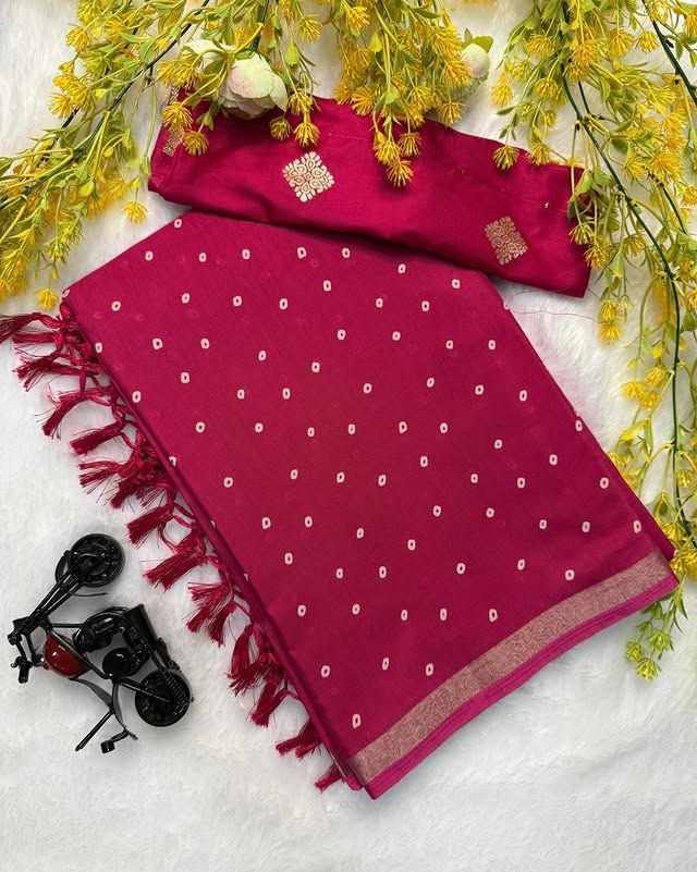 | Name : | PIYU P1014 Dot bandhani Red Saree |