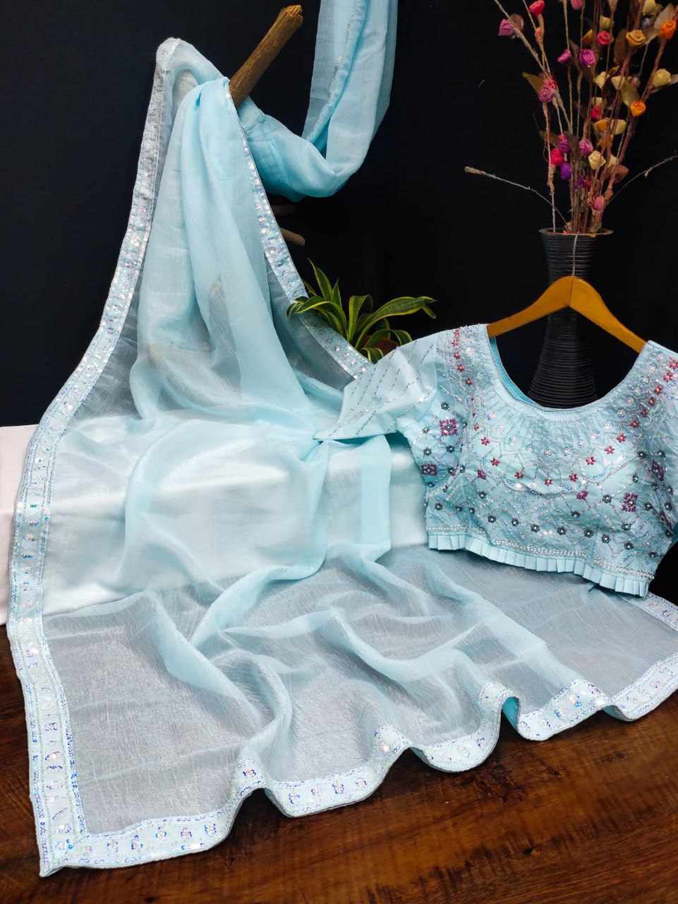 RC Party Wear Blue Crush Shining Saree With Beautiful Heavy Handwork