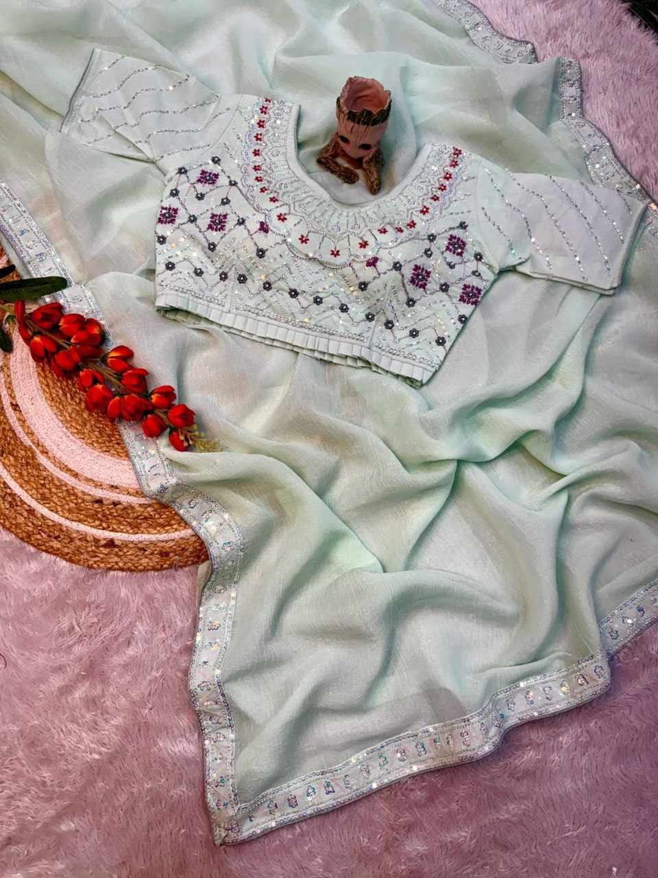 RC Party Wear Crush Shining Saree With Beautiful Heavy Handwork