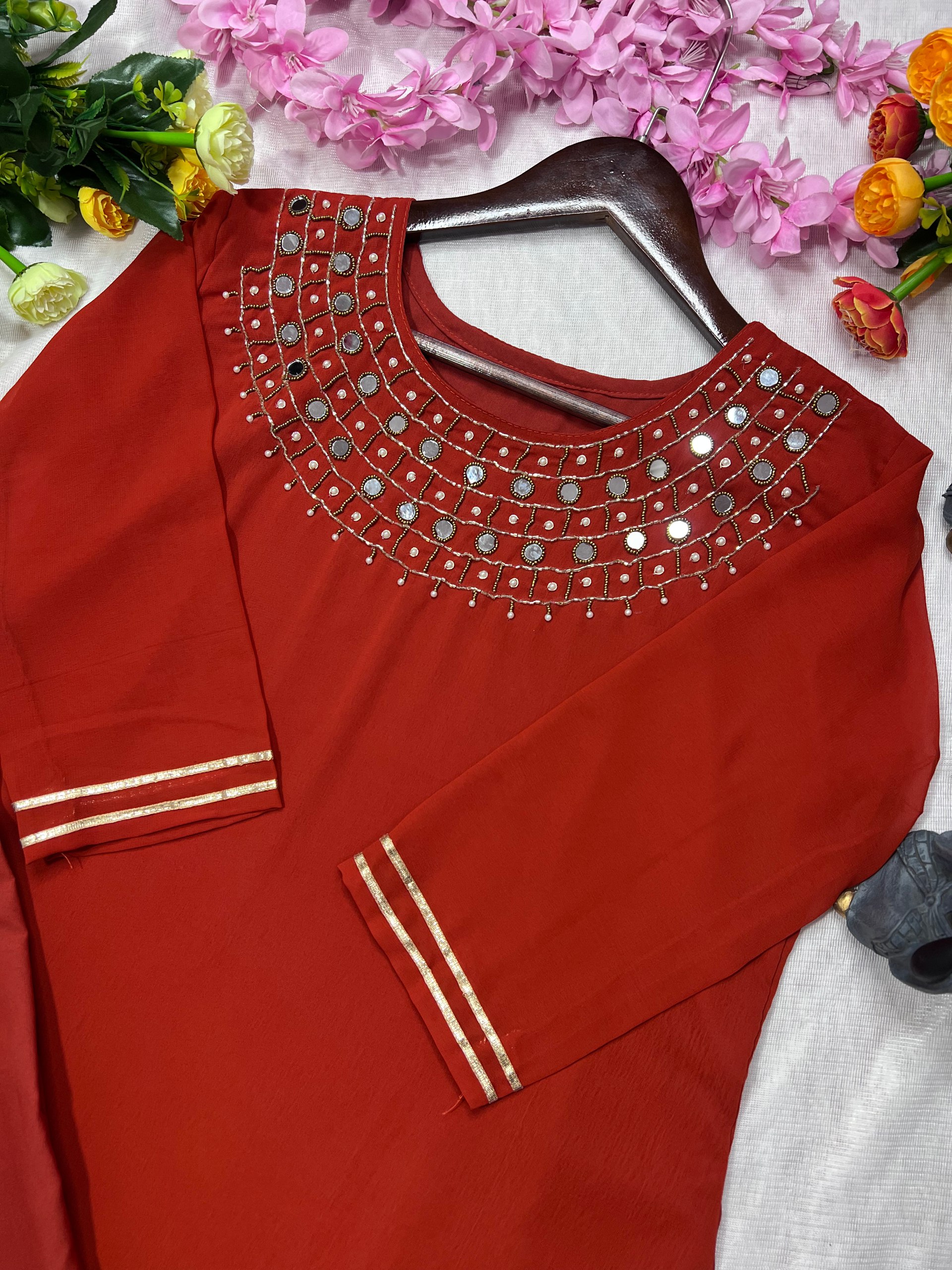 Name : WM 22 ORANGE BLOOMING GEORGETTE KURTI